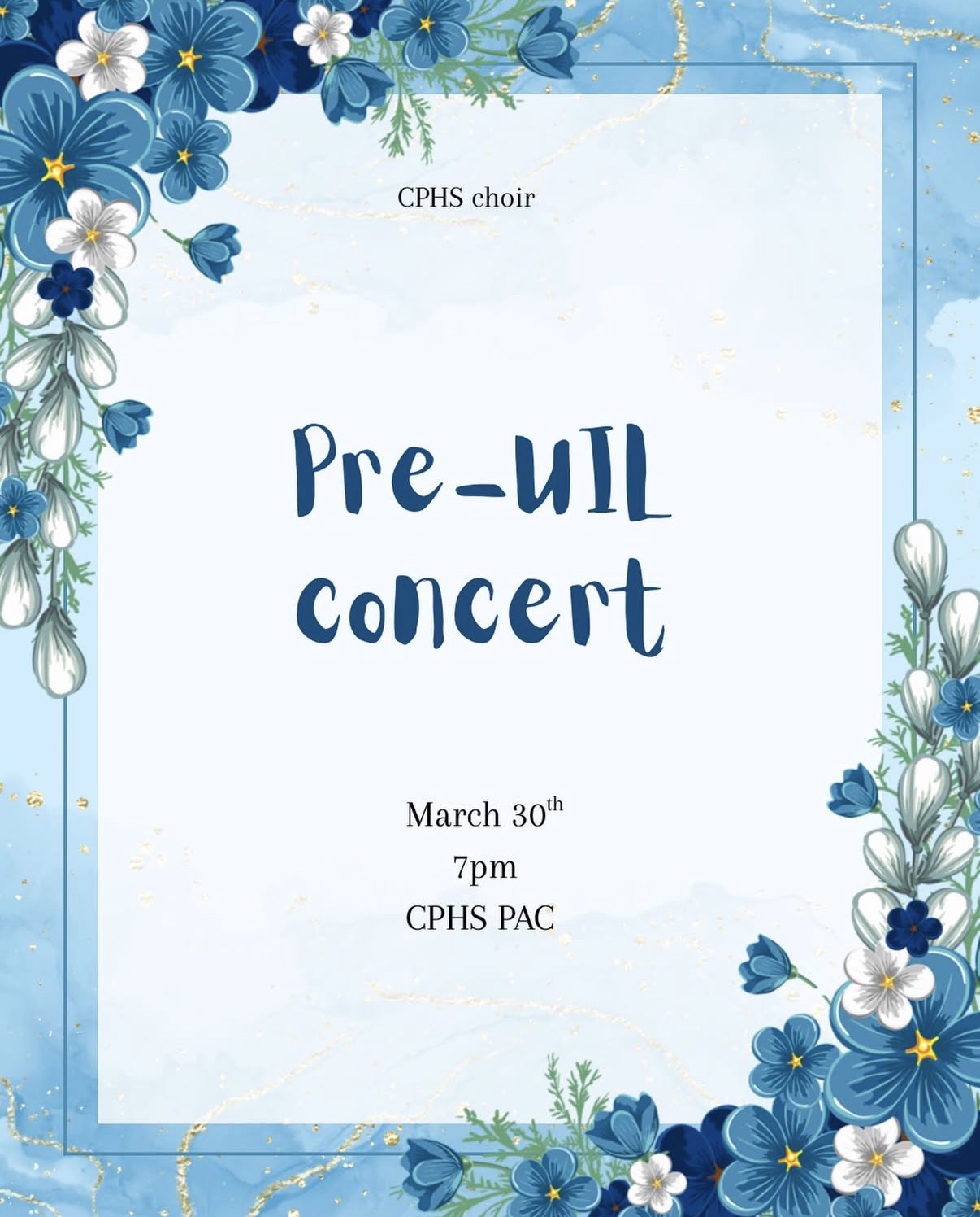 Choir Wire Concerts UIL Competition Pre-Uil Concert! March 29, 2026March 29, 2026 Choir Officers Come join our CPHS Choir at the PAC on March 30th at 7:00 PM to hear their impressive UIL Competition music!