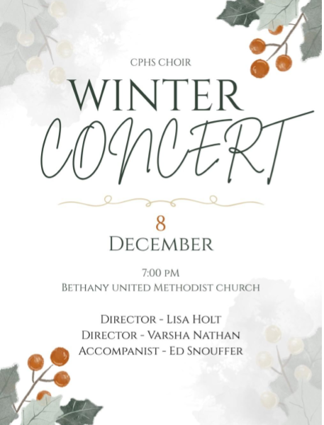 Come join our CPHS Choir at Bethany United Methodist Church on December 8th at 7:00 PM for their wondrous Winter Concert!